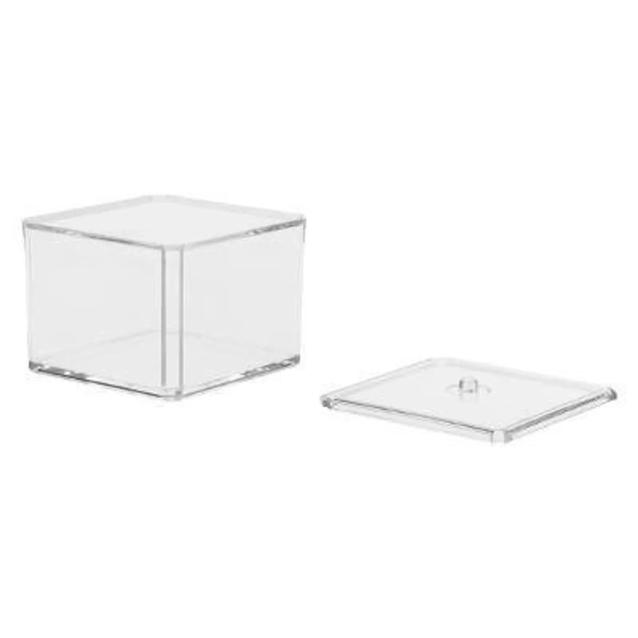 Die zwei transparenten, stapelbaren Dosen bestehen aus robustem Kunststoff und sind mit einem passenden Deckel ausgestattet. Durch das klare Design sehen Sie jederzeit, was sich im Inneren befindet – ganz ohne Öffnen. Ideal für alle, die praktische Organisation mit modernem Stil verbinden möchten.