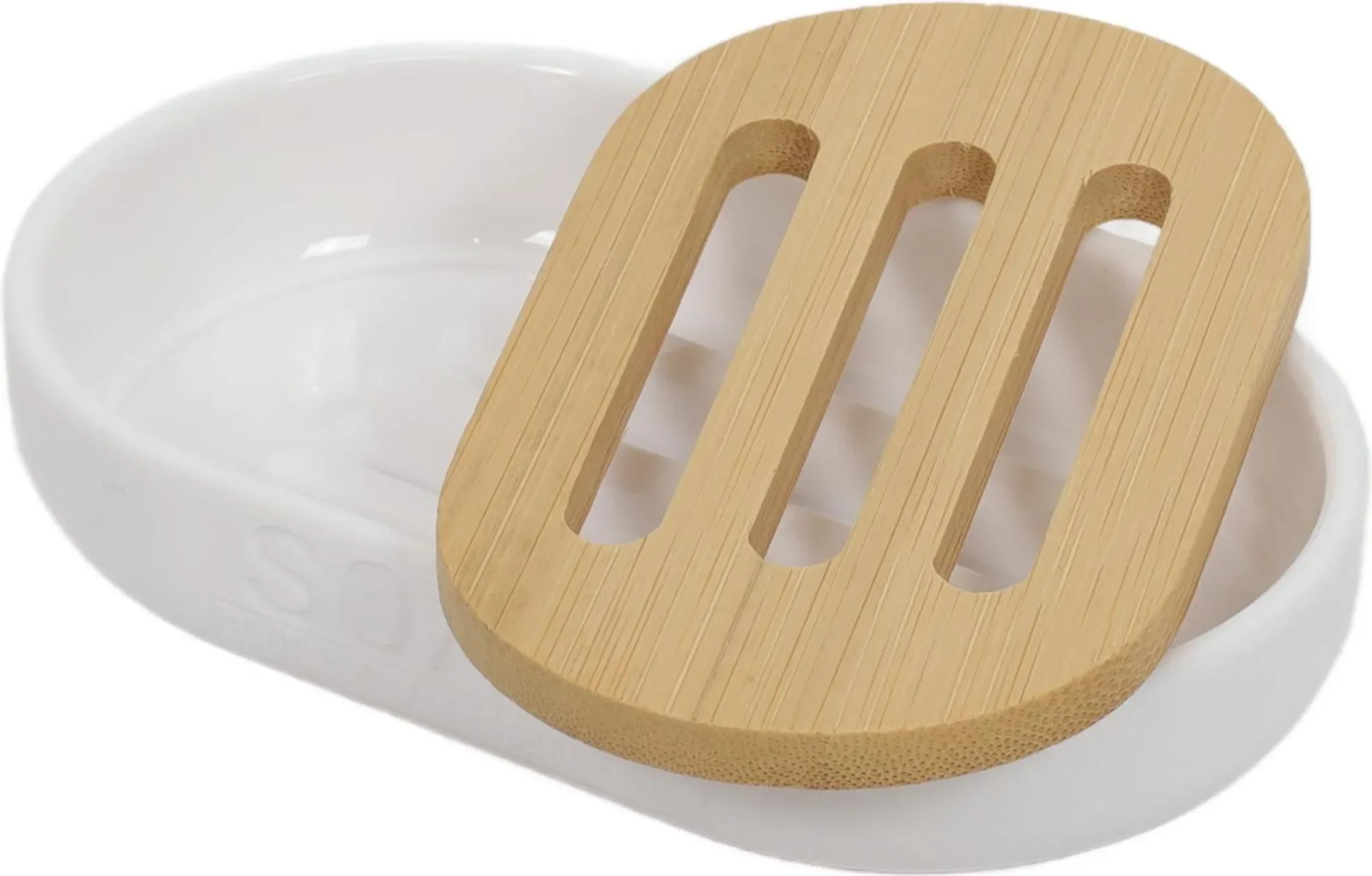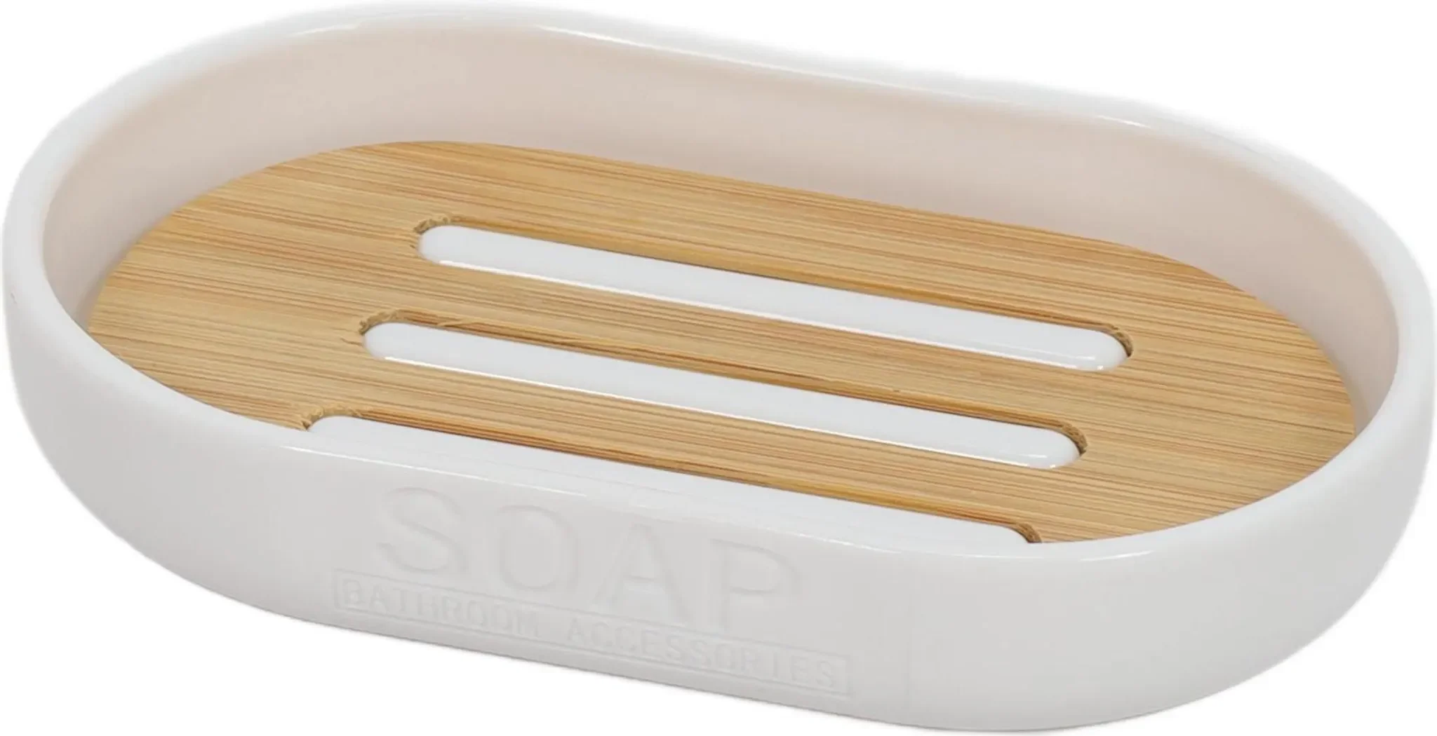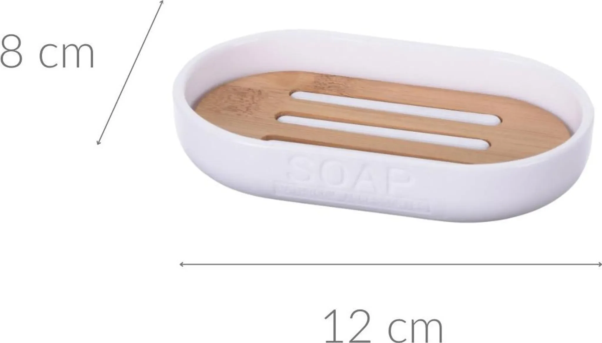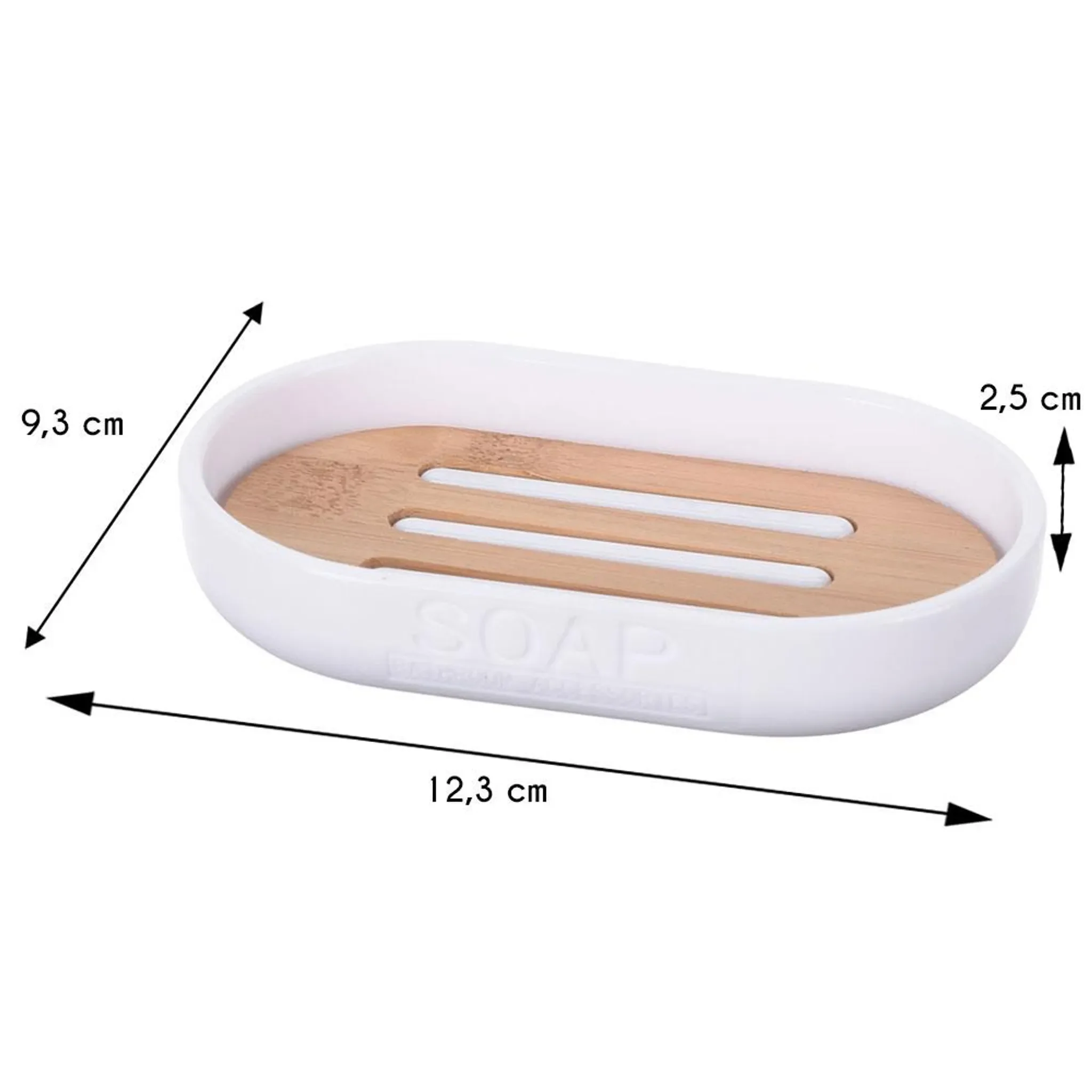 Produktinformationen "BATHROOM SOLUTIONS Seifenschale – Weiß mit Bambuseinsatz, modern & feuchtigkeitsresistent"