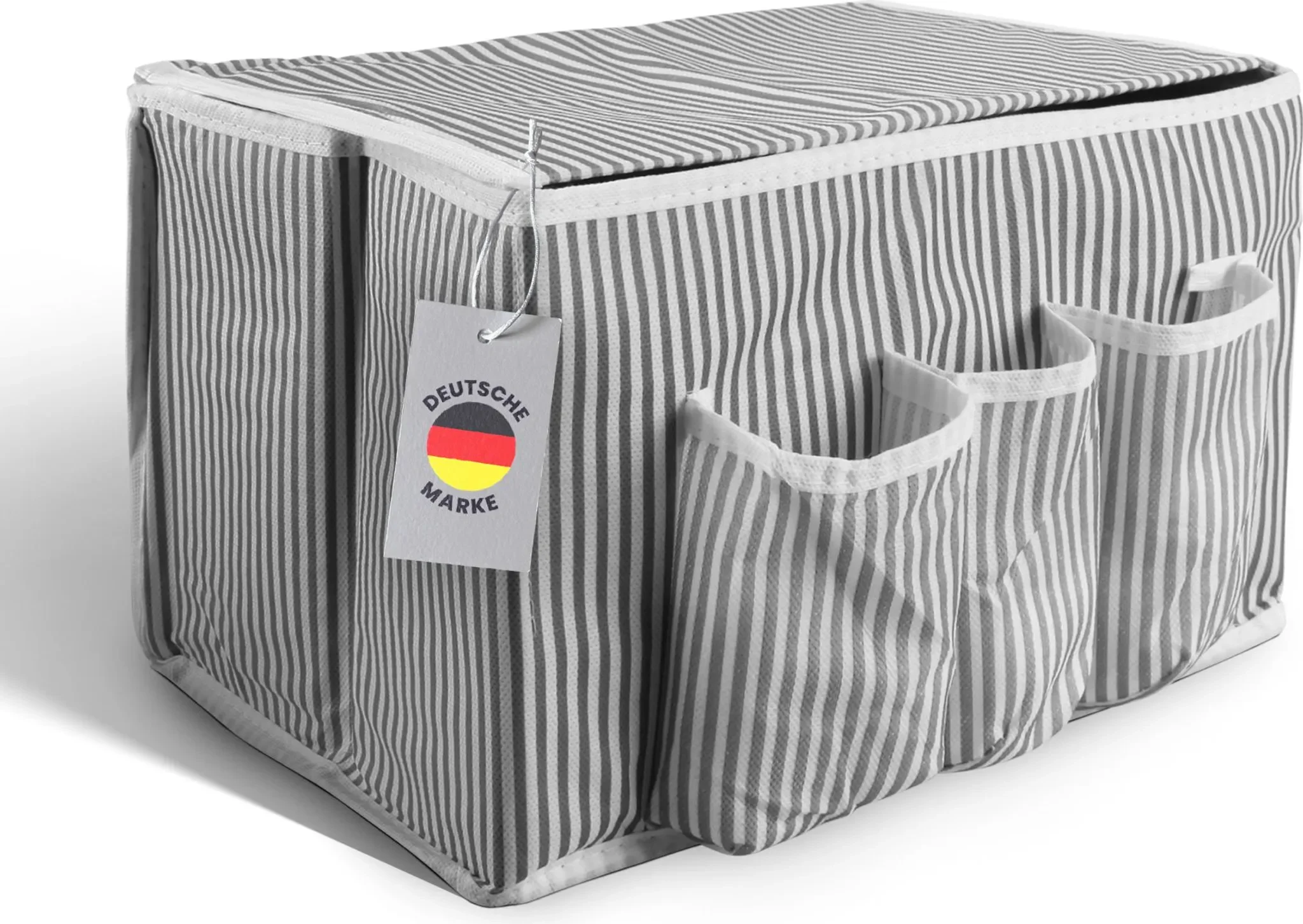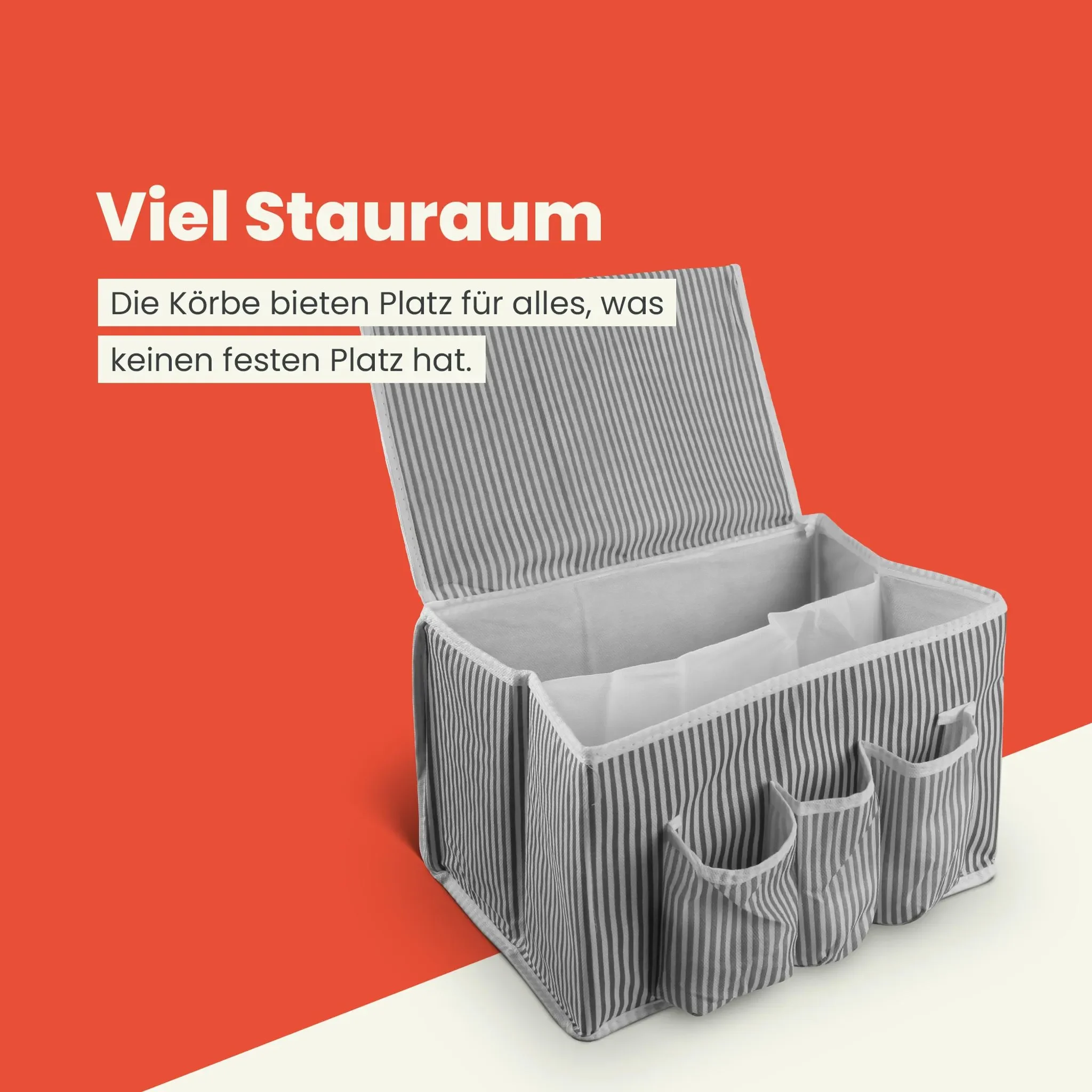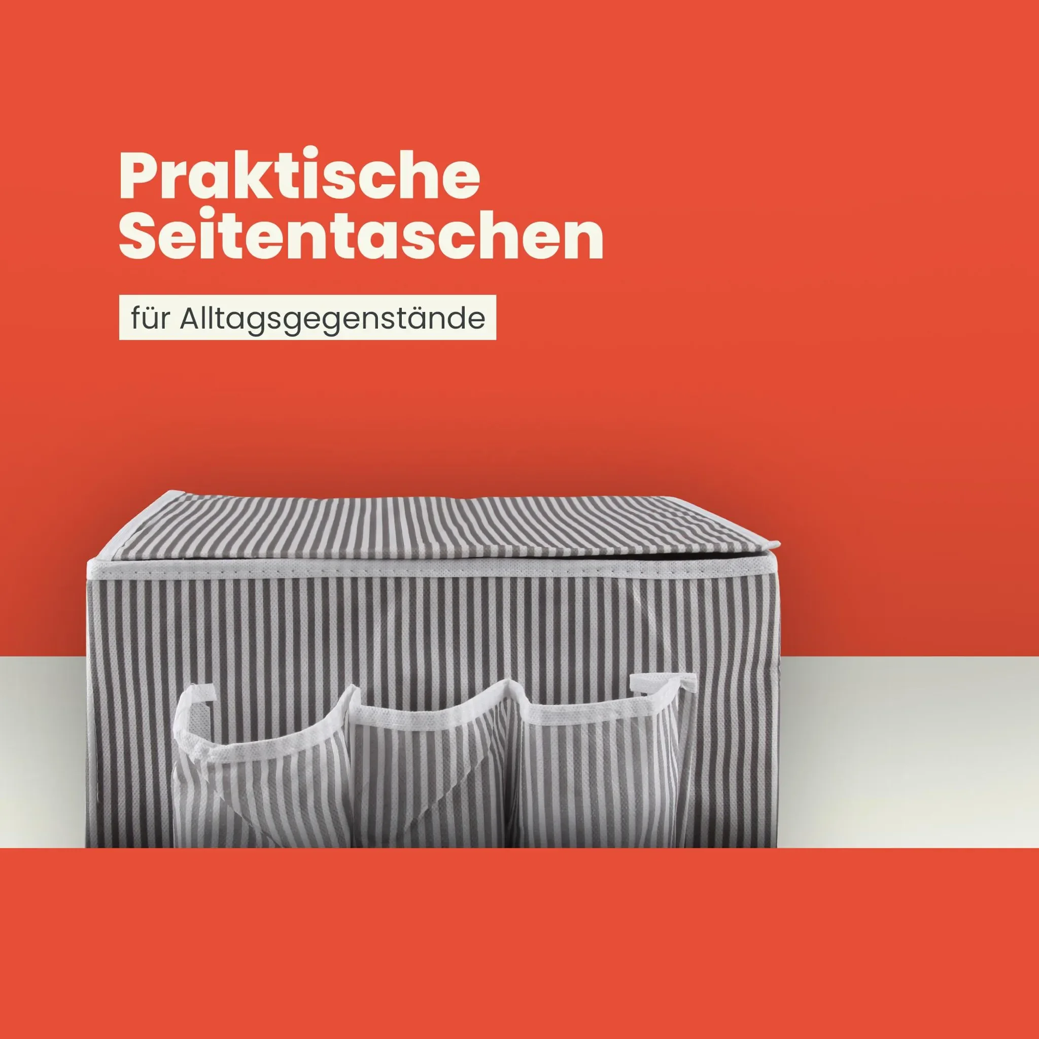 Bestlivings Aufbewahrungsbox – faltbar 35x22x22 cm, Grau-Weiß gestreift