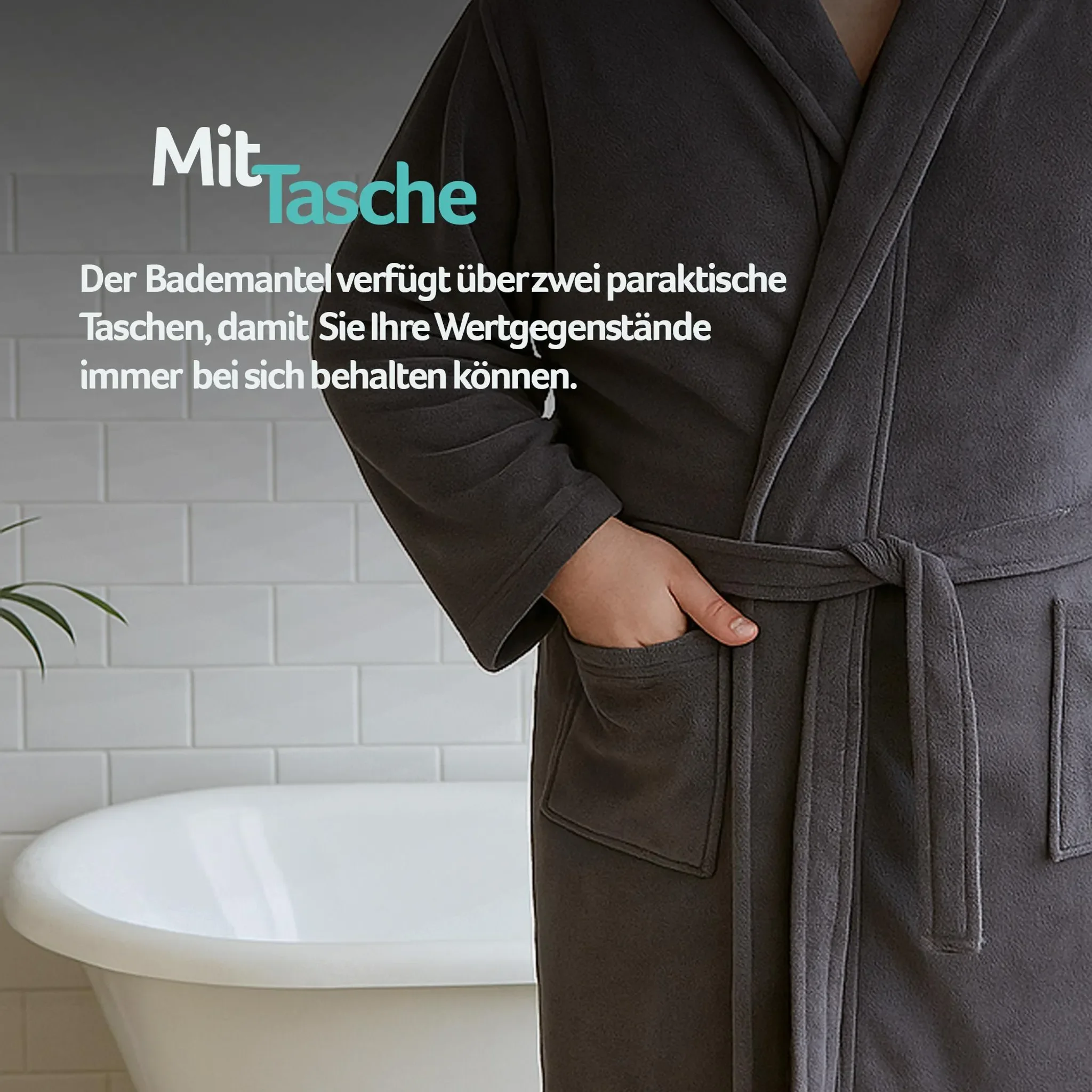 Bestlivings Bademantel 4XL Grau – Flauschiger Unisex Morgenmantel mit Schalkragen & Taschen