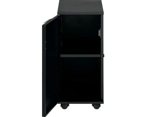 Die Positionierung ist frei wählbar: links oder rechts am Grill. Vier flexible Lenkrollen sorgen dafür, dass der Rollcontainer komfortabel manövriert werden kann. Ein integrierter Regalboden bringt Ordnung in Zubehör und Zutaten, sodass alles schnell griffbereit ist – ideal für Garten und Terrasse.