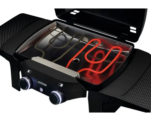 Der eURBAN 2 Elektrogrill kombiniert leistungsstarke 2,2 kW mit einem emaillierten Gussrost und einer leicht zu reinigenden Edelstahl-Reflektorschale. In Verbindung mit abnehmbaren Seitenablagen, Deckelthermometer und durchdachtem Kabelmanagement ist er eine praktische Lösung für urbanes, elektrisches Grillen im Außen- und überdachten Außenbereich.