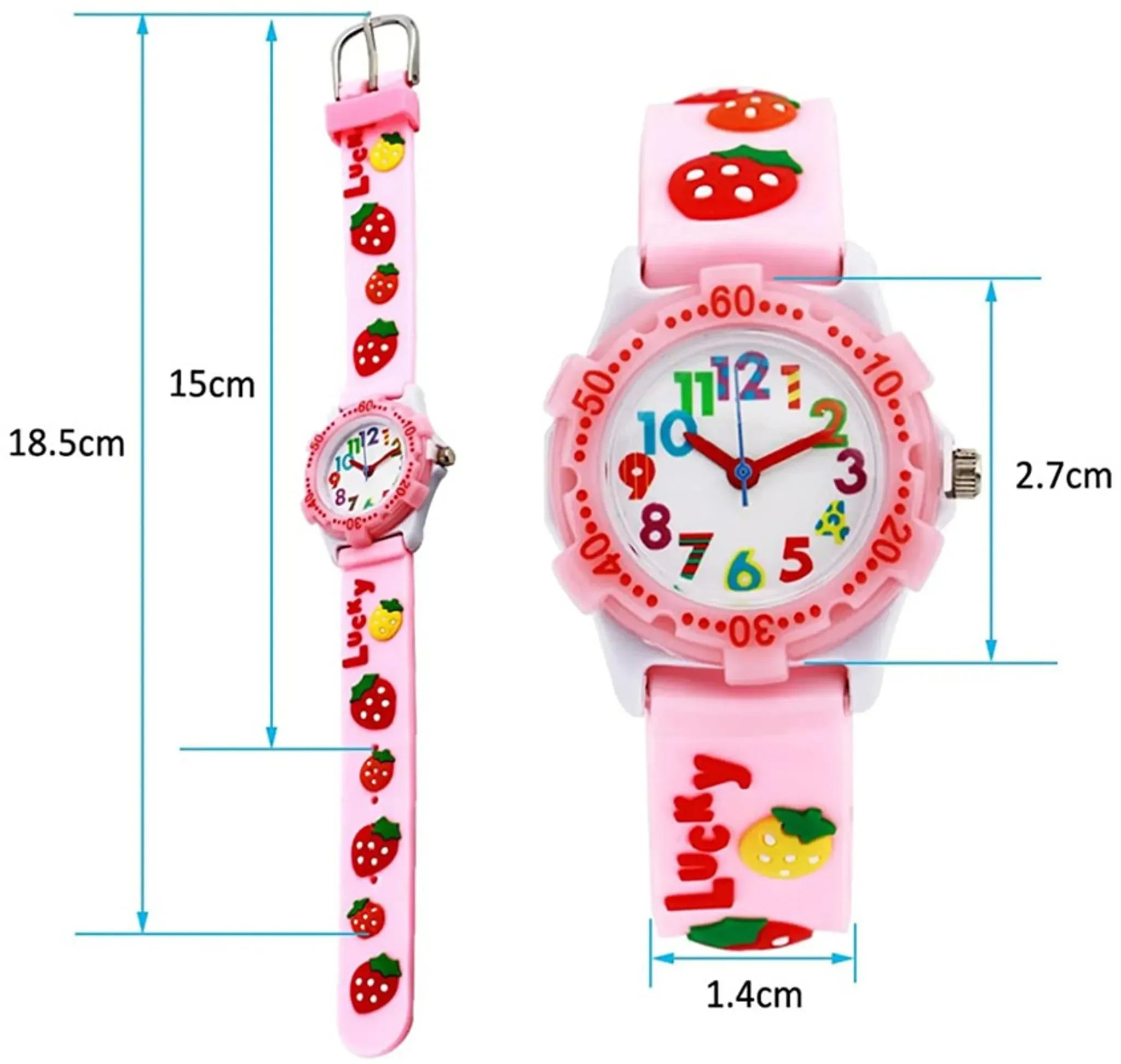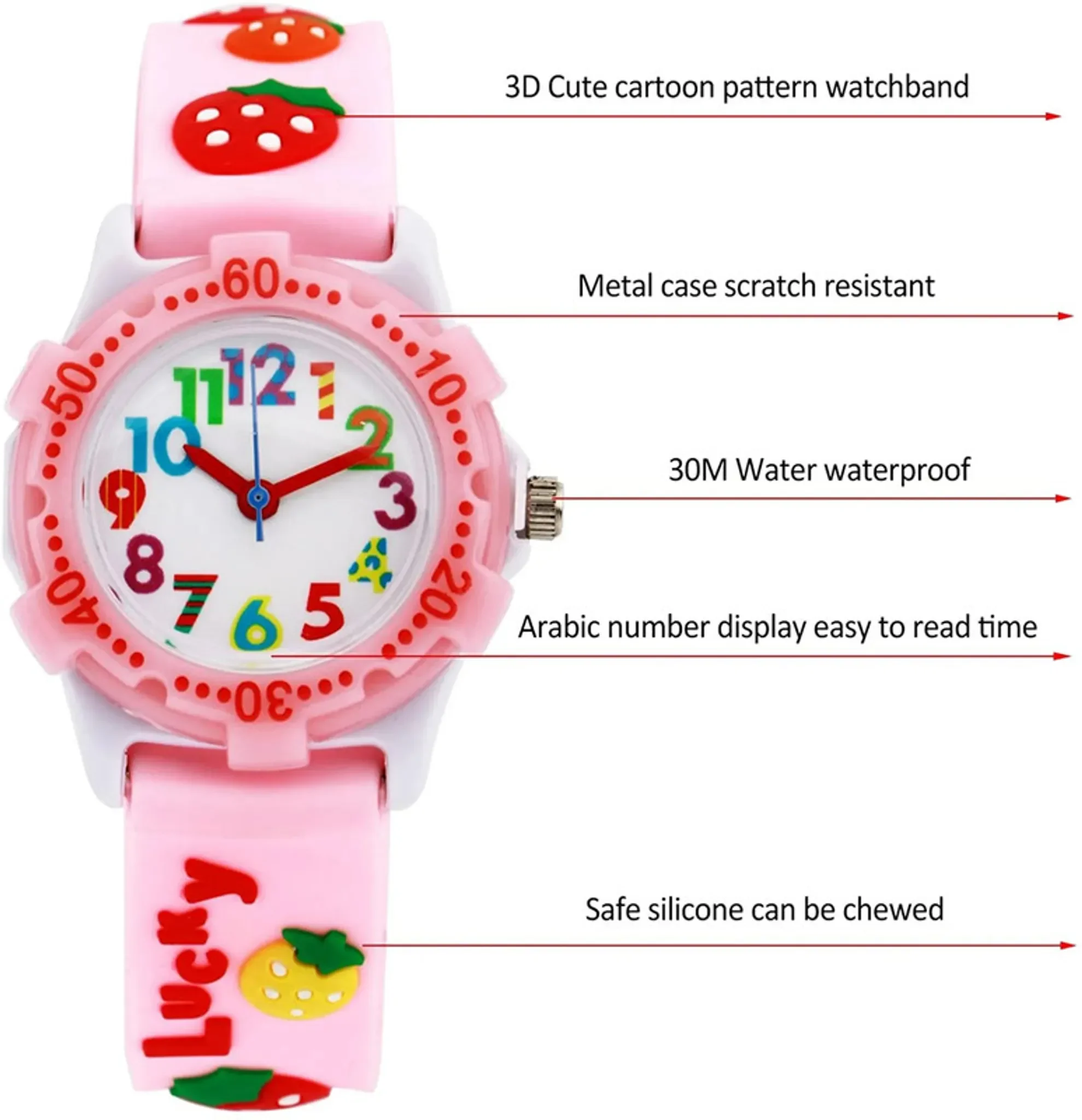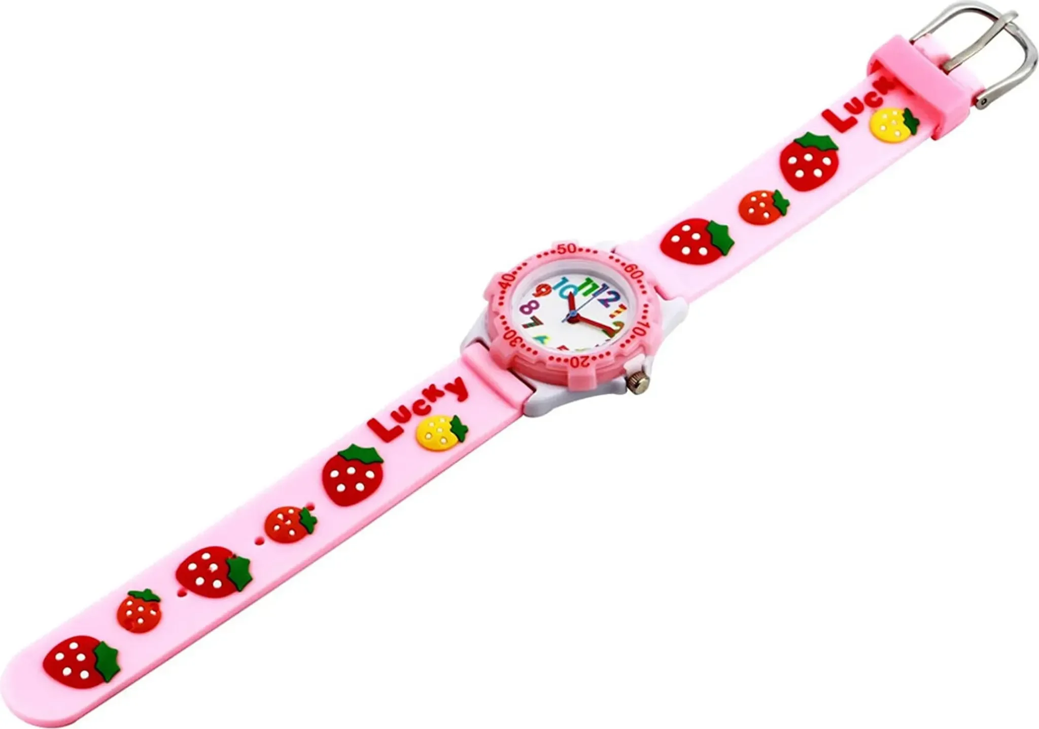 Produktinformationen "Kinderuhr Strawberry-Rosa – wasserdichte Quarzuhr für Jungen & Mädchen"
