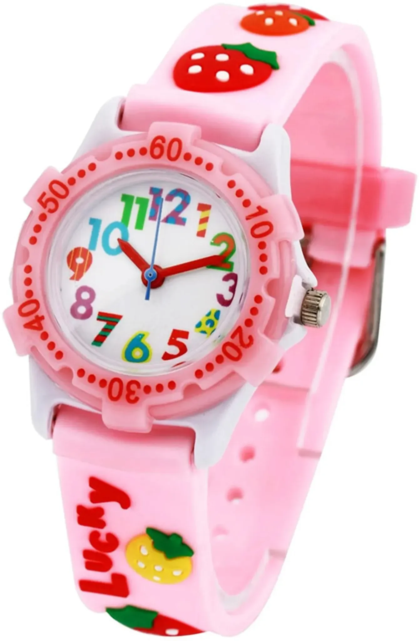 Kinderuhr Strawberry-Rosa – wasserdichte Quarzuhr für Jungen & Mädchen