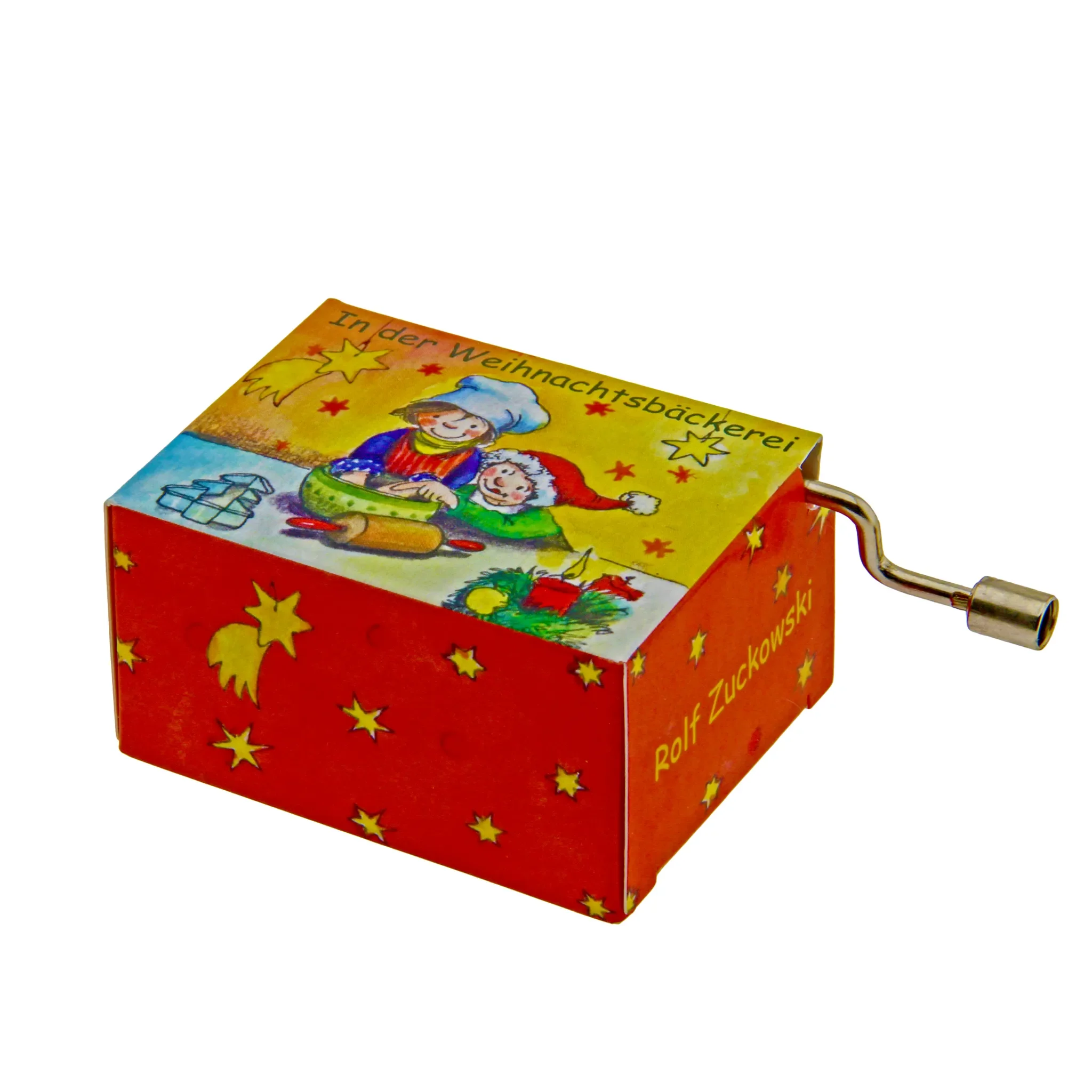 Diese liebevoll gestaltete Spieluhr spielt die fröhliche Melodie „In der Weihnachtsbäckerei“ von Rolf Zuckowski – ein Klassiker zur Adventszeit! Die kleine Mini-Drehorgel ist auf einem Resonanzholz montiert, wodurch ein besonders klarer Klang entsteht – ideal für musikalische Früherziehung und stimmungsvolle Weihnachtsmomente.