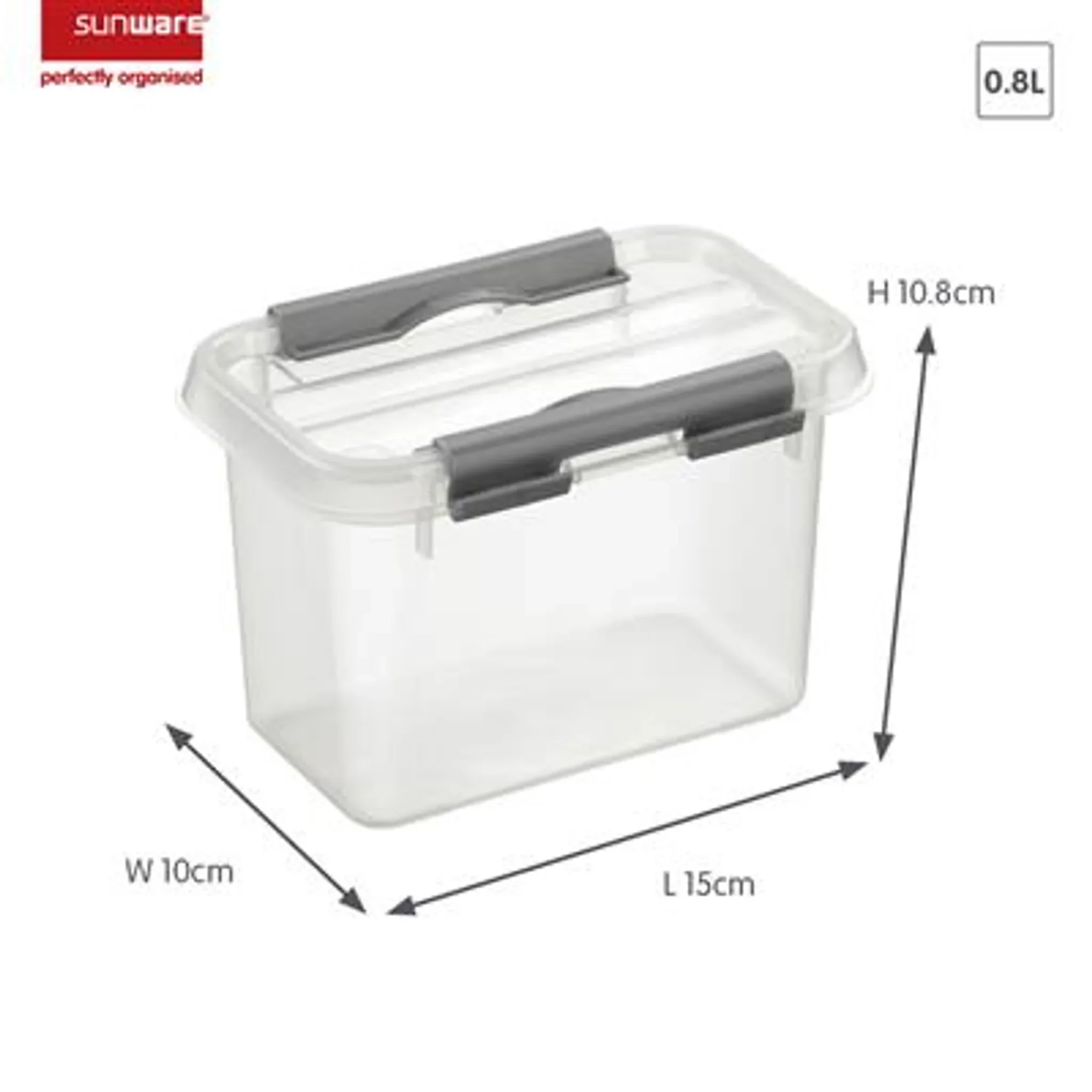 Produktinformationen "Sunware Q-line Aufbewahrungsbox 0,8 Liter – Transparent mit Deckel & Clips"