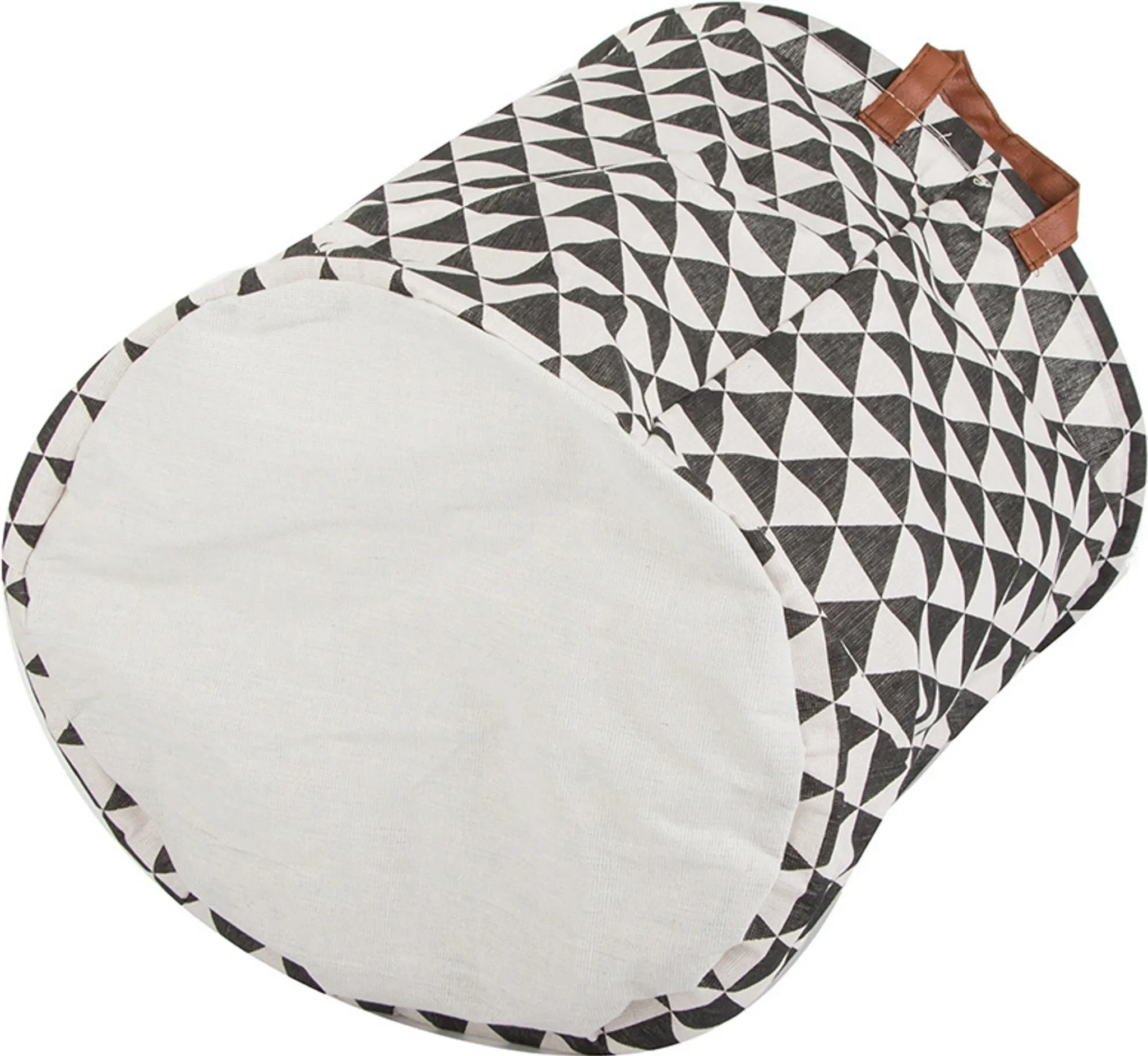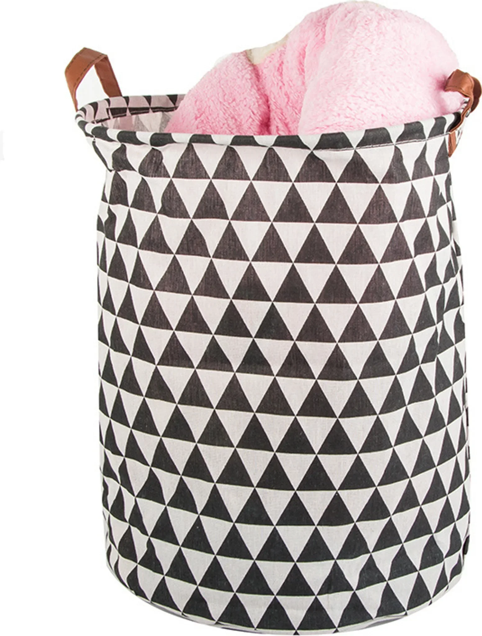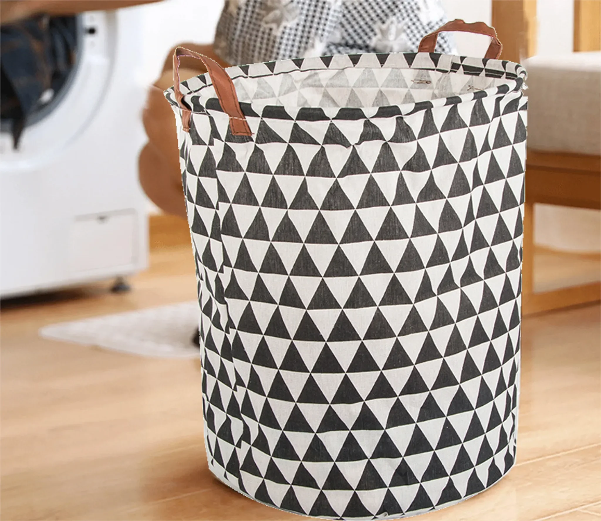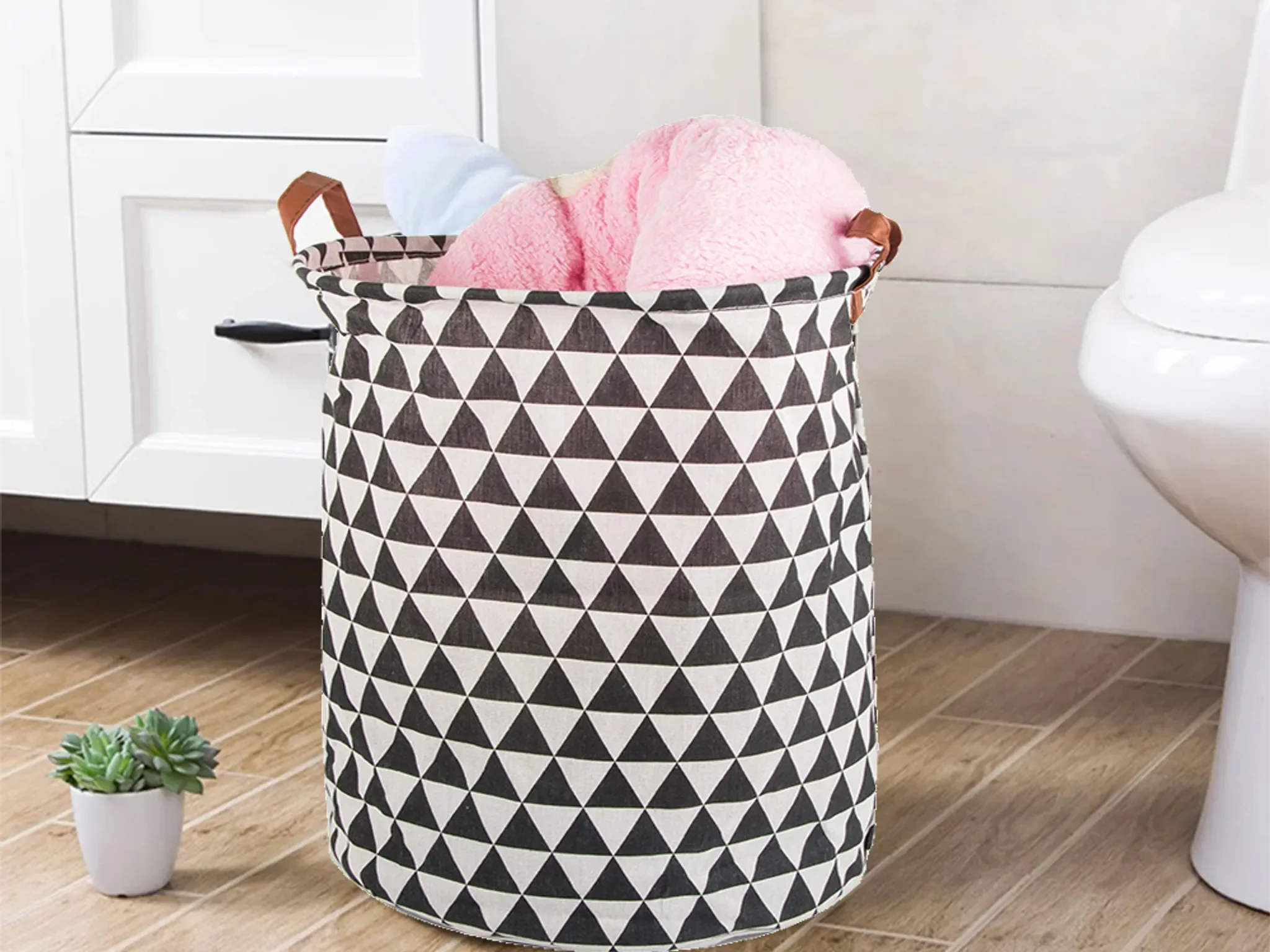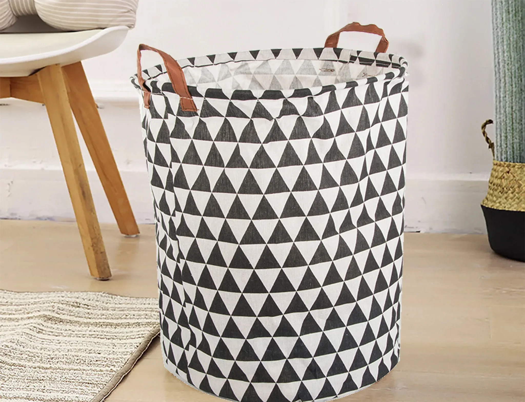 Gefertigt aus robustem, stabilem Material und ausgestattet mit ergonomischen Tragegriffen, überzeugt der Korb durch praktische Handhabung und modernes Design in schwarz-weißem Muster. Er fügt sich harmonisch in Badezimmer, Schlafzimmer oder Kinderzimmer ein.