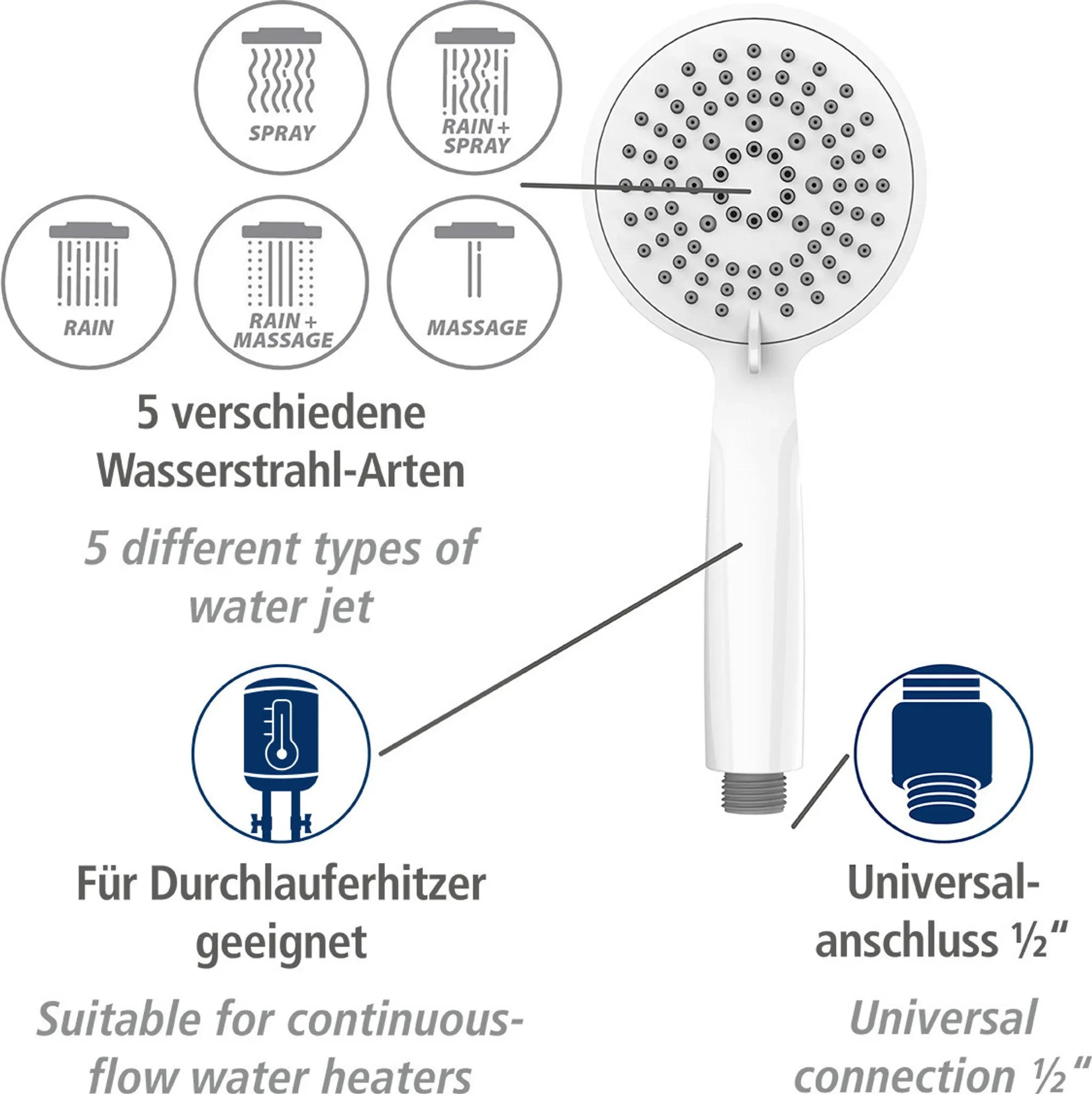 Produktinformationen "WENKO Duschkopf YOUNG Weiß Ø 11 cm – Handbrause mit 5 Strahlarten"